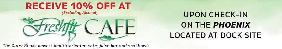 1. Phoenix – Located on the Nags Head Causeway // Kitty Hawk Kites/Whalebone Junction, 7517 South Virginia Dare Trail on the south side of NC 64 Hwy that connects Nags Head and Roanoke Island. You will board the Phoenix at the Kitty Hawk Kites Whalebone Watersports site - yellow building with a blue roof. Also available at this site you can rent kayaks, standup paddleboards and jet skis so make a day of it. Next door is Fresh Fit Cafe, serving breakfast, lunch and great smoothies.