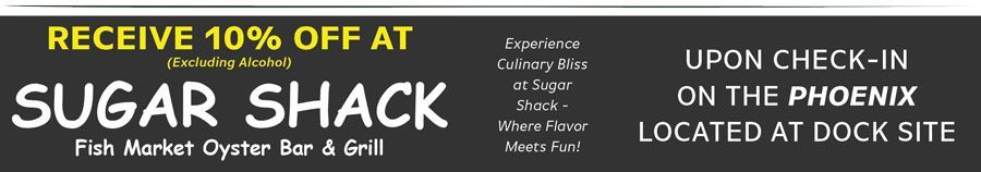 1. Phoenix – Located on the Nags Head Causeway // Kitty Hawk Kites/Whalebone Junction, 7517 South Virginia Dare Trail on the south side of NC 64 Hwy that connects Nags Head and Roanoke Island. You will board the Phoenix at the Kitty Hawk Kites Whalebone Watersports site - yellow building with a blue roof. Also available at this site you can rent kayaks, standup paddleboards and jet skis so make a day of it. Next door is Fresh Fit Cafe, serving breakfast, lunch and great smoothies.